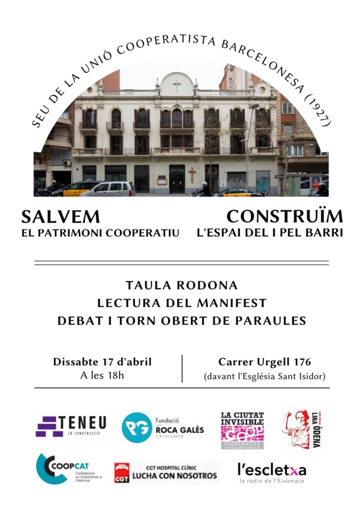 Convoca: Fundació Roca Galès, Ateneu En Construcció, La Ciutat Invisible, Confederació de Cooperatives de Catalunya, Casal Popular Lína Òdena, CGT Hospital Clínic i ràdio L’Escletxa.