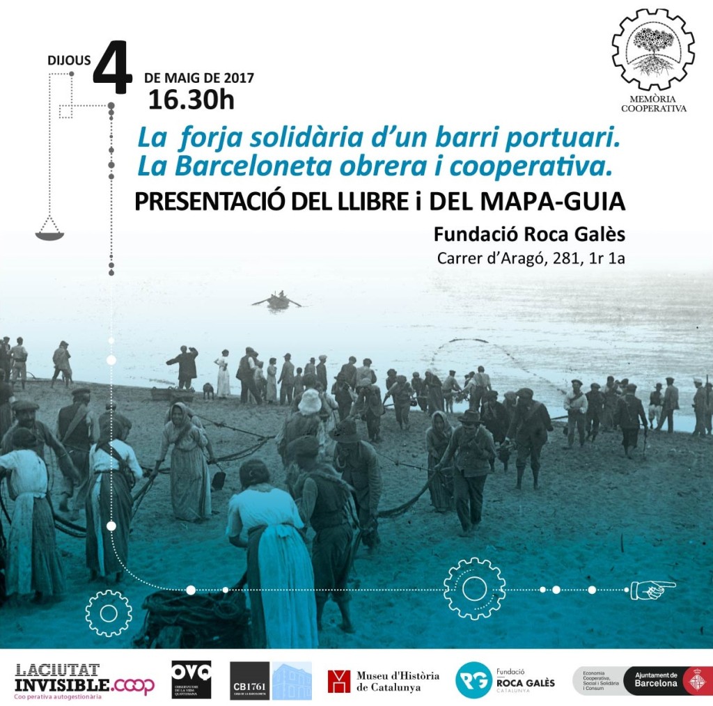 Dins el cicle Emprius del cooperativisme, el tercer Debat/cafè te lloc el dijous 4 de maig a les 16:30 h. a la seu de la Fundació Roca Galès amb la presentació del llibre i del mapa-guia “La forja solidària d’un barri portuari. La Barceloneta obrera i cooperativa”, amb Emma Alarí i altres membres del col·lectiu Memòria Obrera de la Barceloneta (MOB), autors del llibre que amb el mateix títol ha editat recentment La Ciutat Invisible dins la seva col·lecció Memòria cooperativa.